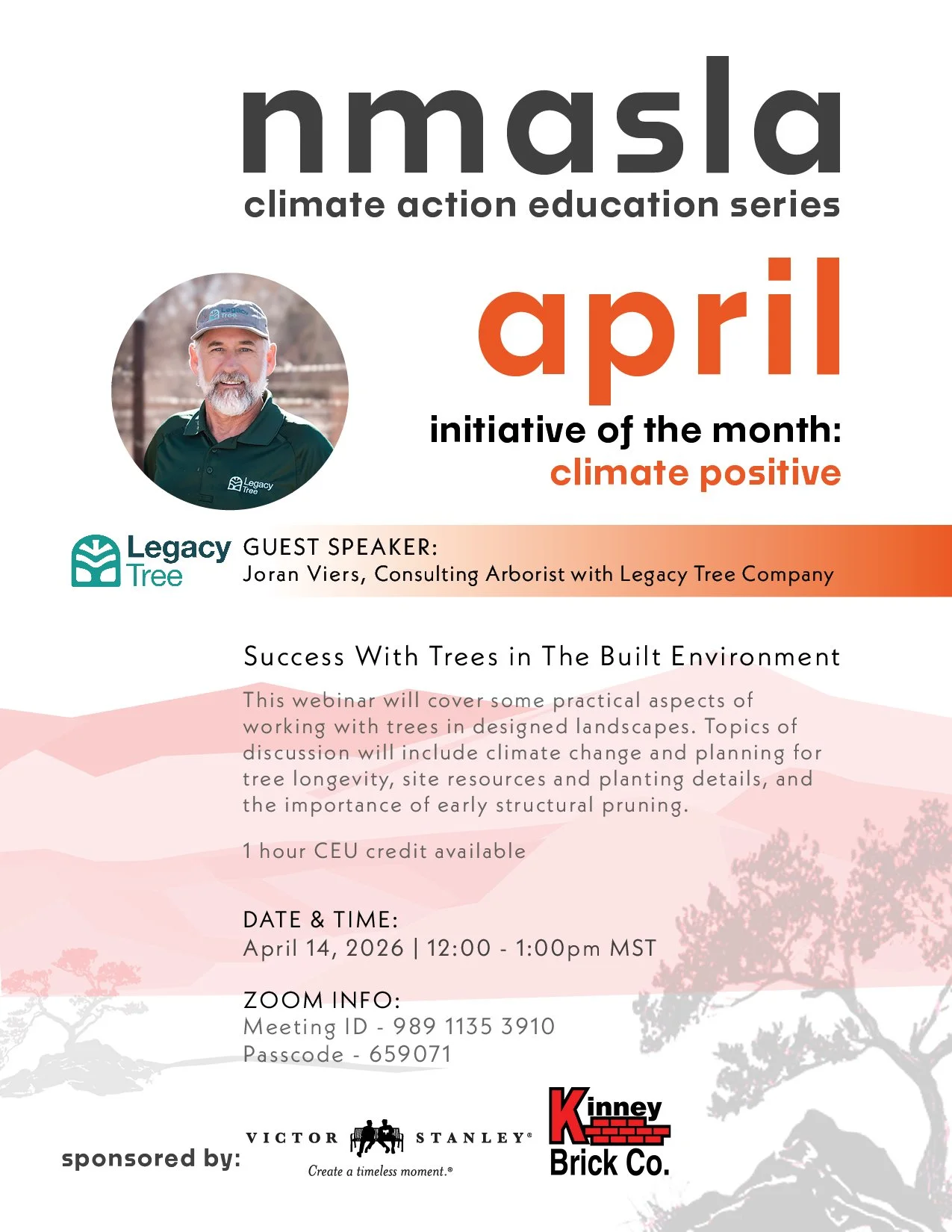 New Mexico ASLA is excited to offer a monthly climate action educational series for 2025 to promote the exchange of ideas, actions, and initiatives for professionals working to address and transform climate challenges into opportunities to improve the health and well-being of our communities, landscapes, and natural resources.